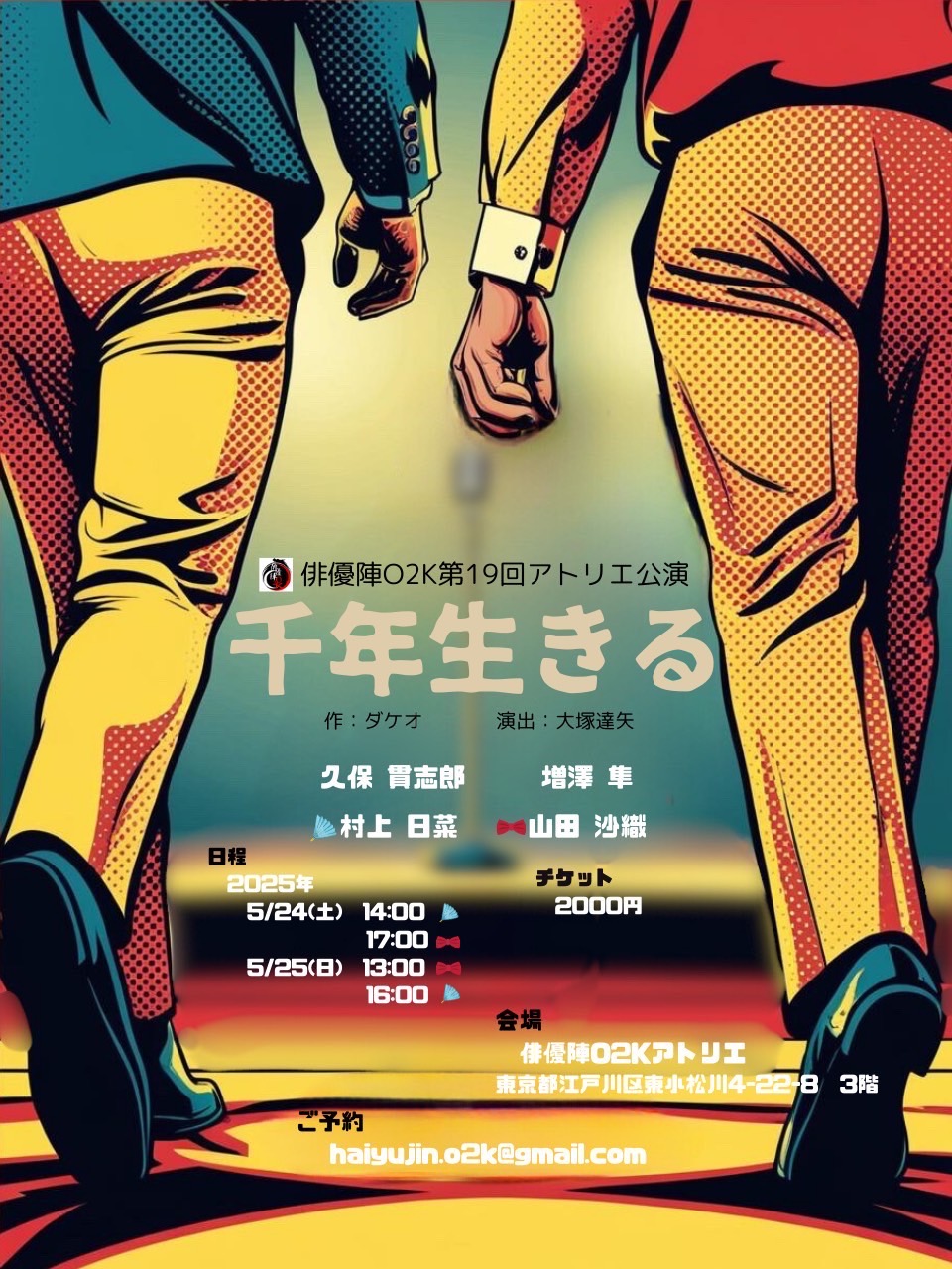 俳優陣O2K 第19回アトリエ公演 【千年生きる】作:ダケオ 演出:大塚 達矢 2025.5.24~25 @俳優陣O2K アトリエ (都営新宿線「船堀」駅から徒歩12分) -Ticket- ¥2,000-(全席自由)